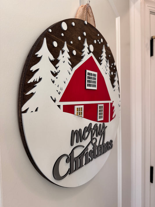 Door Hanger - Merry Christmas Barn