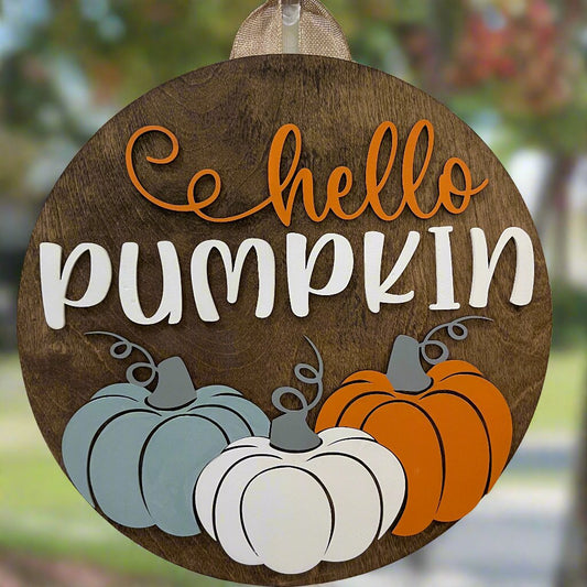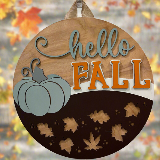 Door Hanger - Hello Fall (Pumpkin & Leaves)