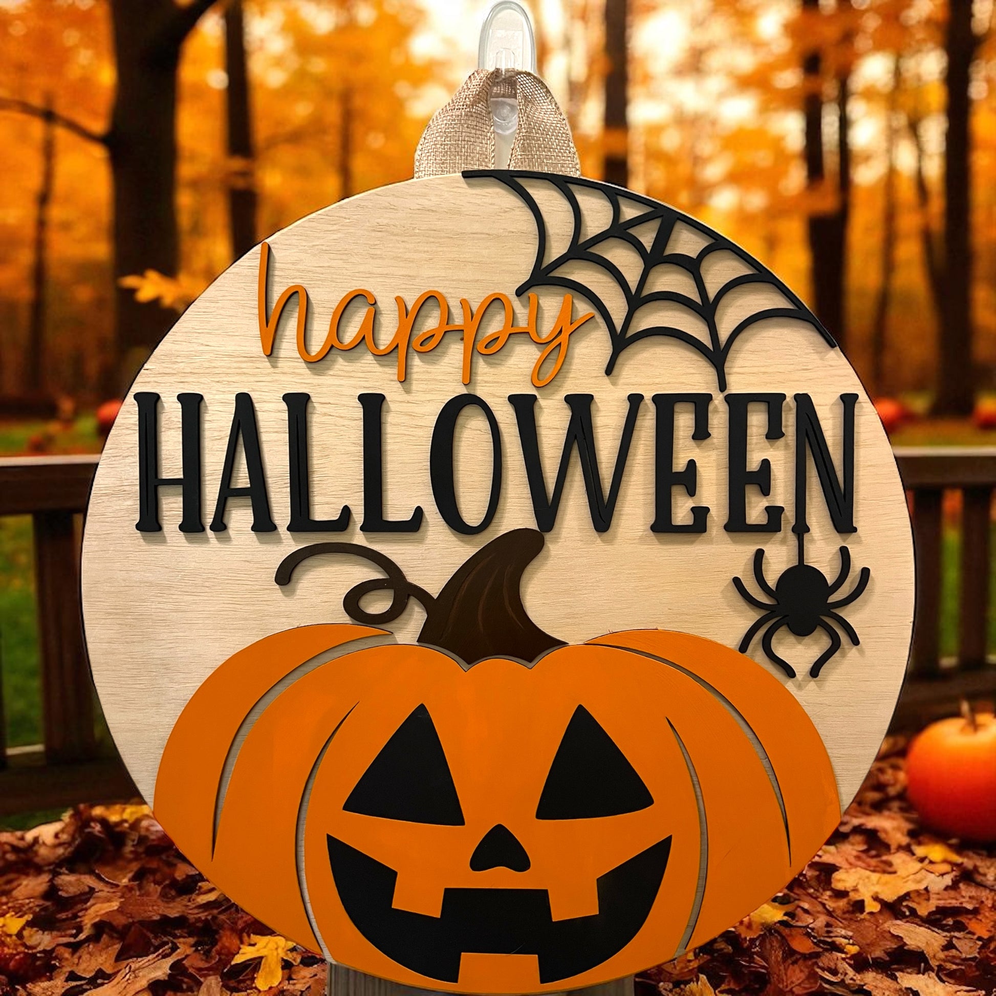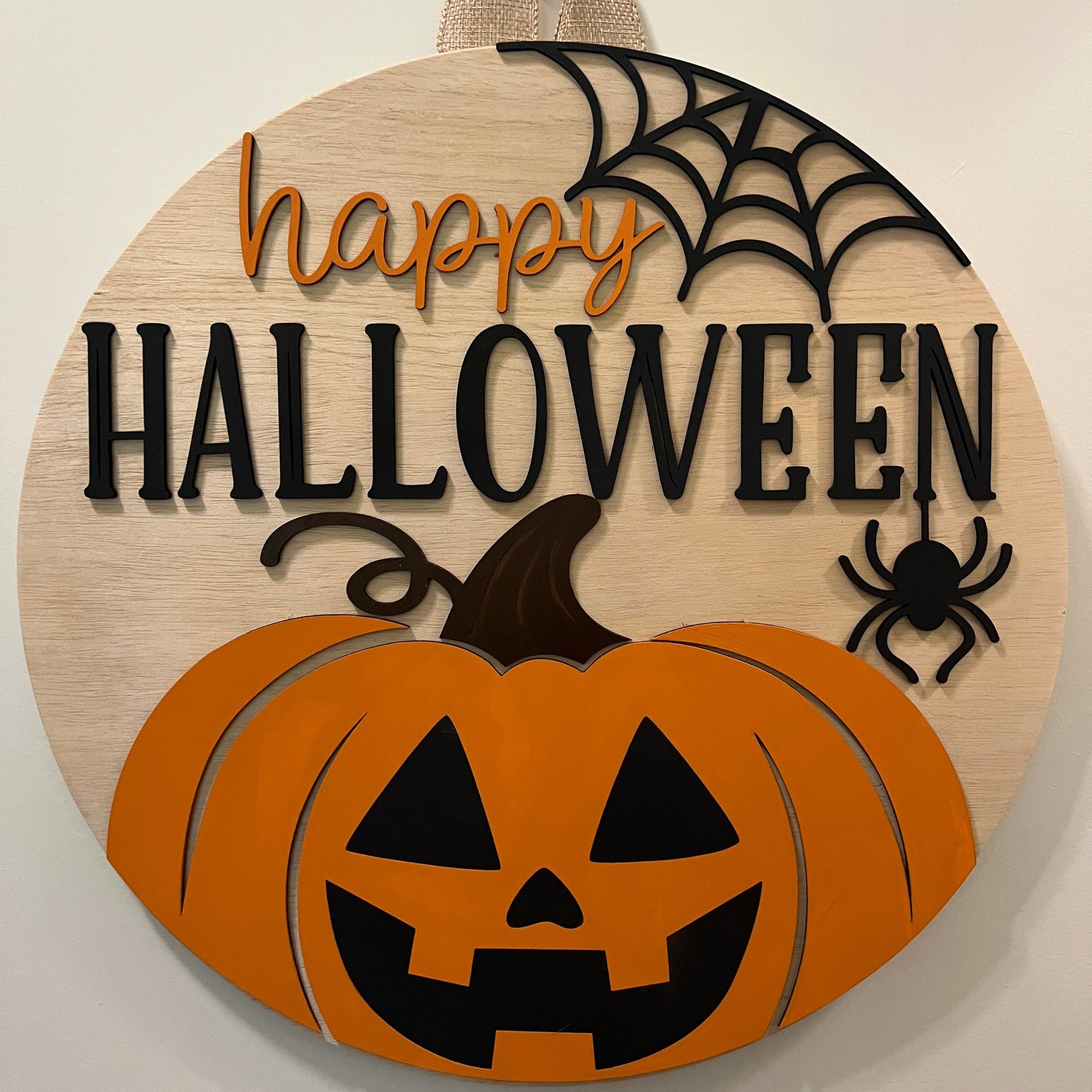 Door Hanger - Happy Halloween (Pumpkin Web)