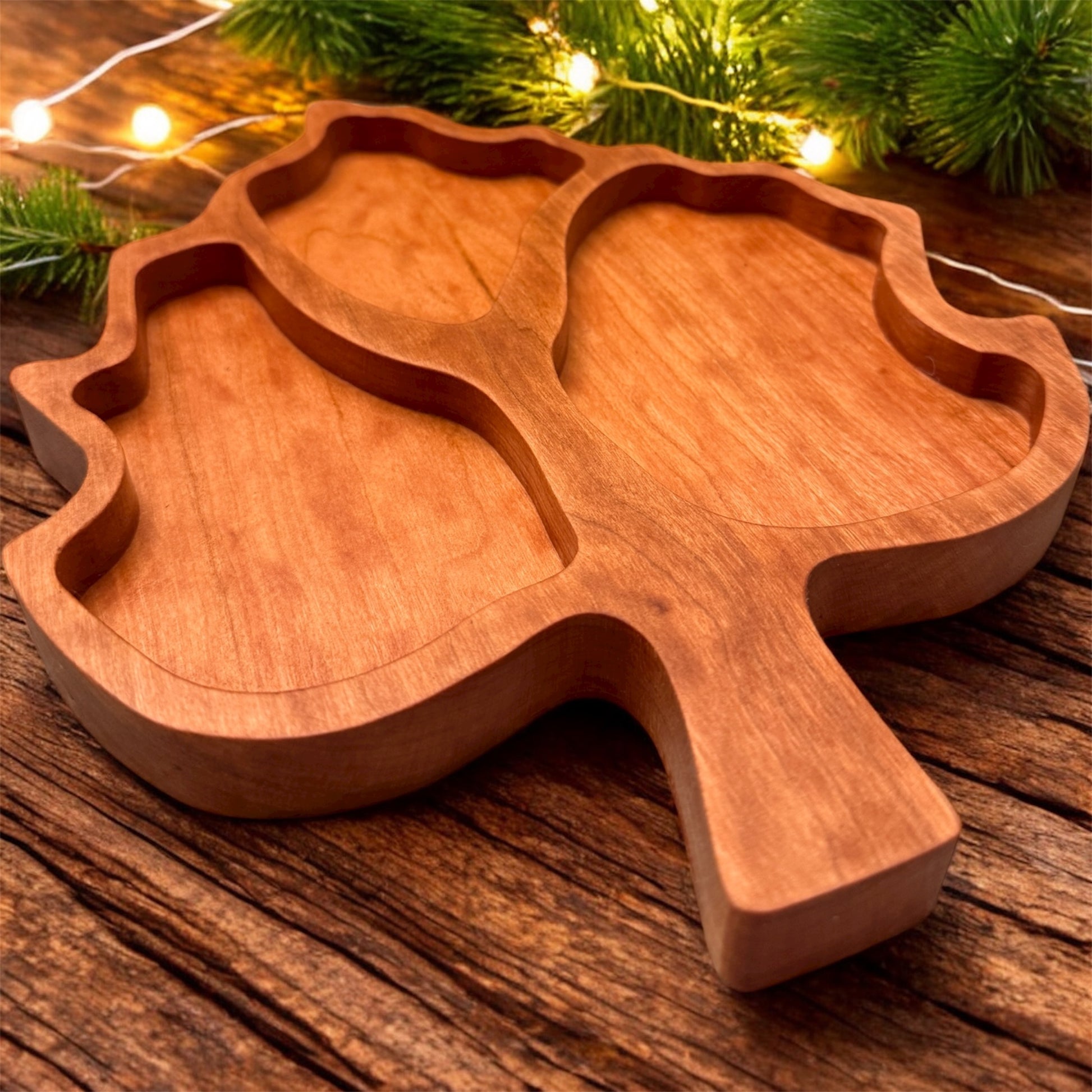 Handcrafted from solid cherry, the Autumn Leaf Tray captures the rich beauty of the season in a timeless design. Its graceful leaf shape and smooth, natural finish make it perfect for serving nuts, candies, or festive treats at holiday gatherings — or simply as a warm accent piece for your home décor.