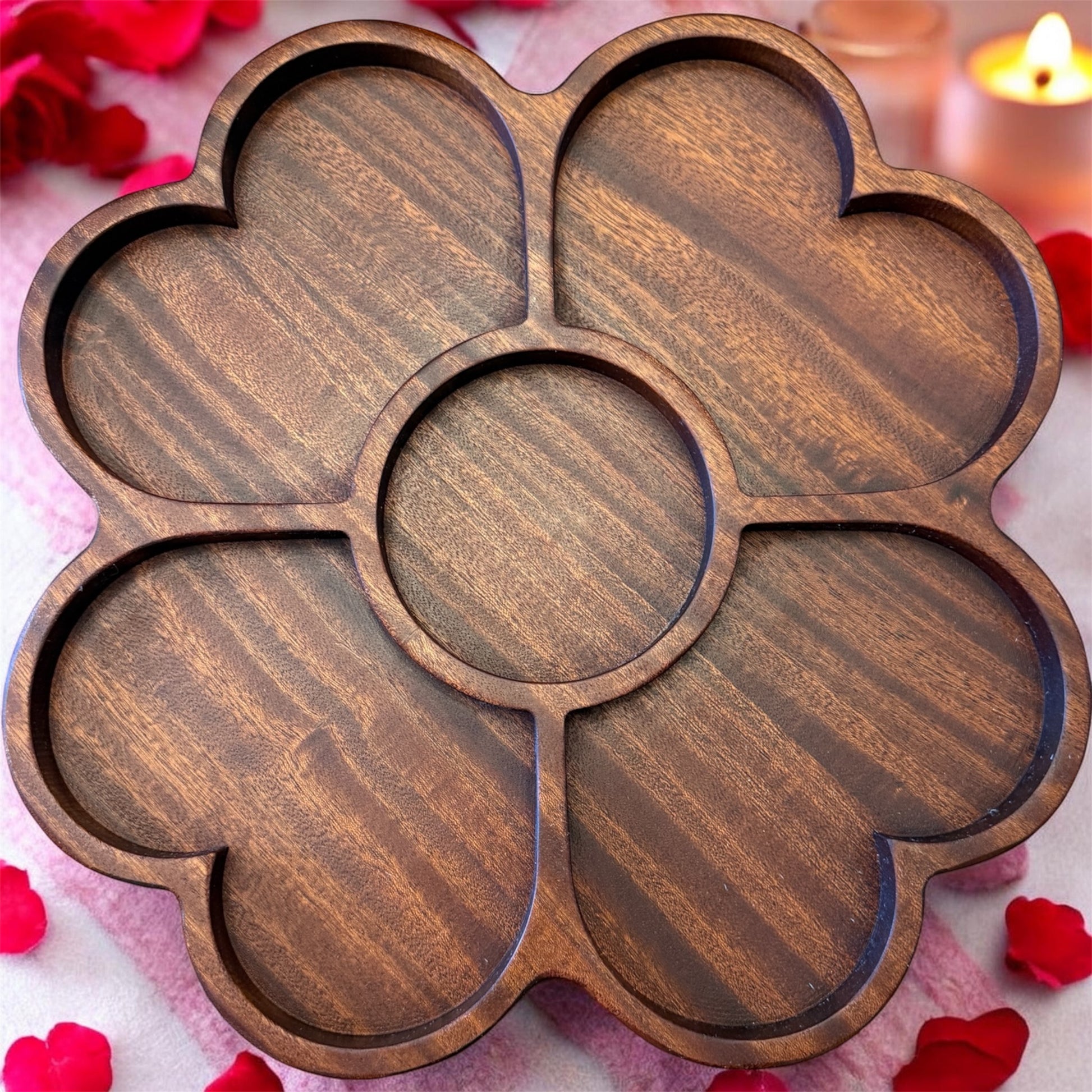 The petal-shaped compartments create a stunning presentation while keeping snacks neatly separated — ideal for entertaining, holidays, or everyday use.