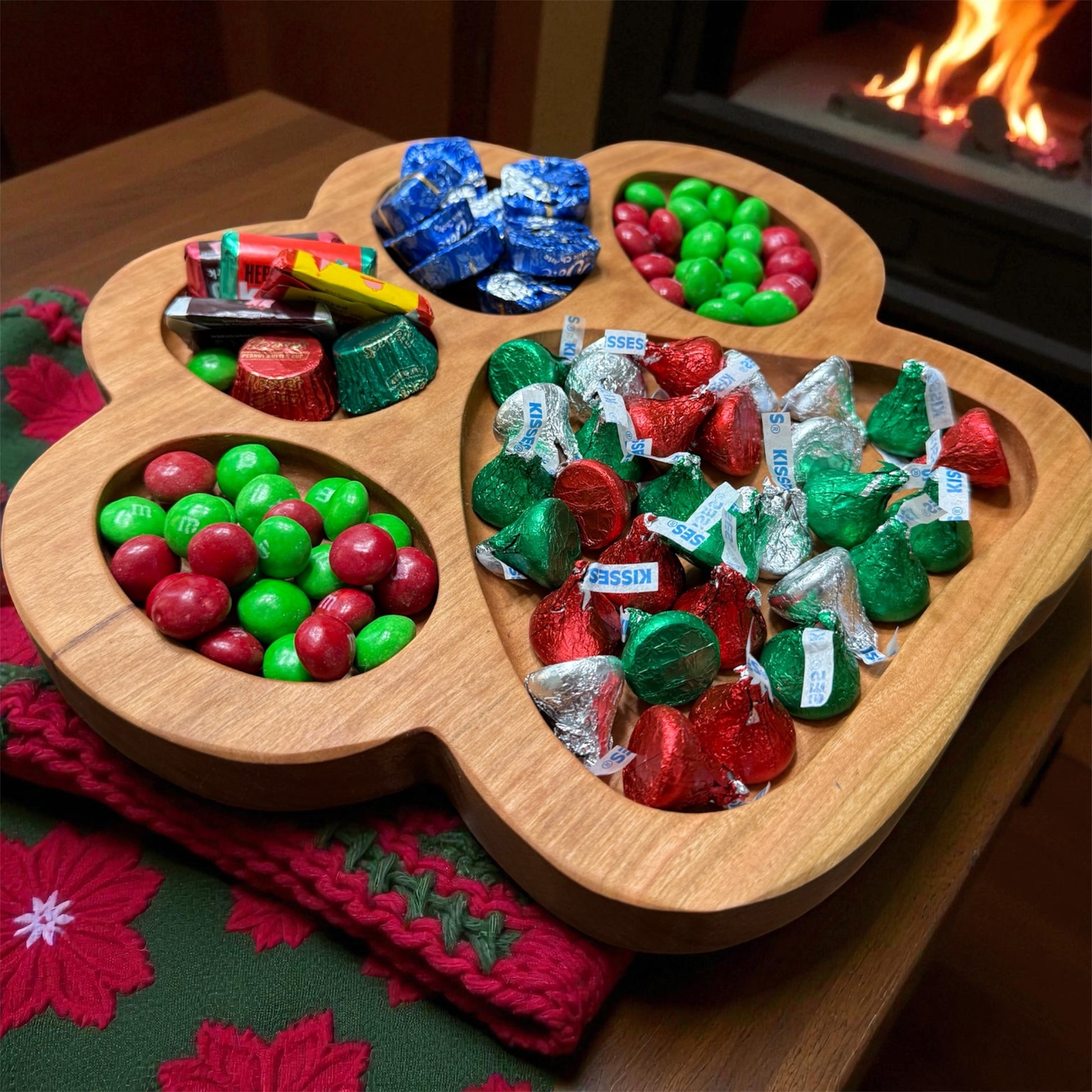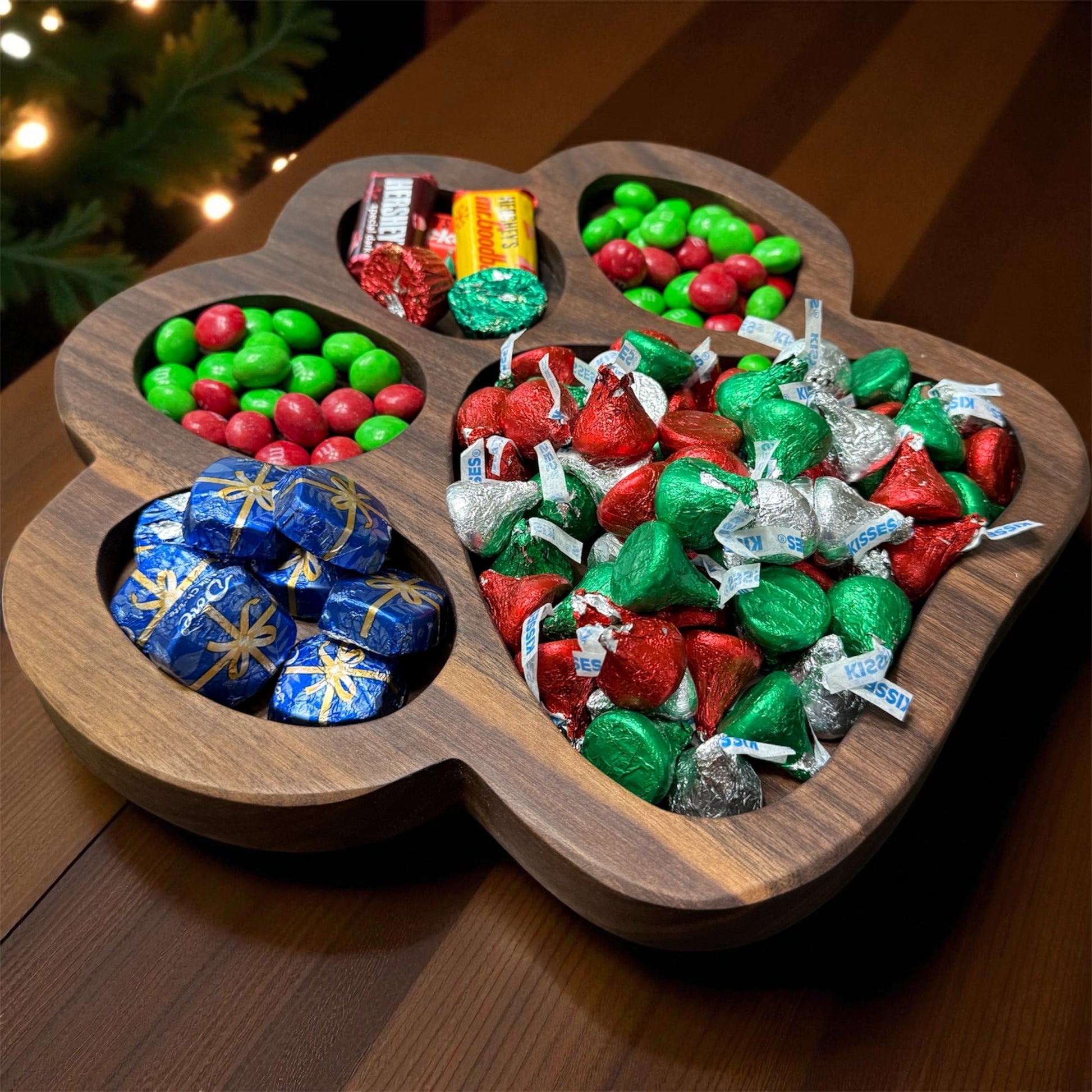 Handcrafted from solid cherry (or walnut), the Dog Paw Tray is a heartwarming piece for pet lovers and entertainers alike. Its playful paw print design and smooth, natural finish make it perfect for serving treats, candies, or snacks — or simply displaying as a charming accent in your kitchen or living space.